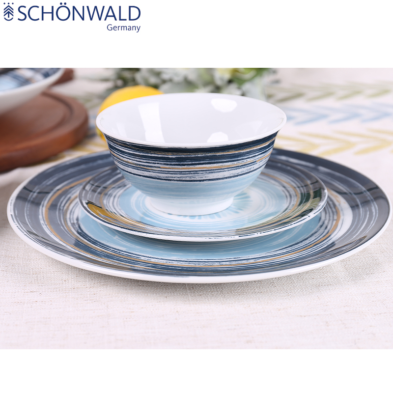 德国的SCHONWALD的陶瓷器皿定位于高端的星级酒店和高端餐厅会所,以及对生活和器皿细节有高追求的人士。 德国Schonwald瓷器用目前世界最先进的陶瓷自动化生产设备,用特制的干粉冲压到钢制模具而成型,同时在经过1000度烧制使胚体定型。保证了产品手感的细腻性,器形外观的规整性和尺寸的统一性! 德国Schonwald瓷器在经过1000度胚体素烧的基础上,通过自动化施釉设备,让瓷釉更均匀吸收到胚体上,再通过1400度的高温烧制。高要求的生产流程保证了产品釉面的耐磨性和均匀性,不惧刀叉的长久切磨! 在秉承德意志民族的严谨精神,恪守生产流程的规范化和对新技术应用的基础上,德国Schonwald瓷器在硬度上一直引领行业标准。高硬度瓷器保证了餐饮器皿日常使用的效率和长久的生命力,长远上为顾客节约成本。