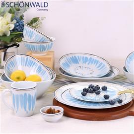 德国的SCHONWALD的陶瓷器皿定位于高端的星级酒店和高端餐厅会所,以及对生活和器皿细节有高追求的人士。 德国Schonwald瓷器用目前世界最先进的陶瓷自动化生产设备,用特制的干粉冲压到钢制模具而成型,同时在经过1000度烧制使胚体定型。保证了产品手感的细腻性,器形外观的规整性和尺寸的统一性! 德国Schonwald瓷器在经过1000度胚体素烧的基础上,通过自动化施釉设备,让瓷釉更均匀吸收到胚体上,再通过1400度的高温烧制。高要求的生产流程保证了产品釉面的耐磨性和均匀性,不惧刀叉的长久切磨! 在秉承德意志民族的严谨精神,恪守生产流程的规范化和对新技术应用的基础上,德国Schonwald瓷器在硬度上一直引领行业标准。高硬度瓷器保证了餐饮器皿日常使用的效率和长久的生命力,长远上为顾客节约成本。