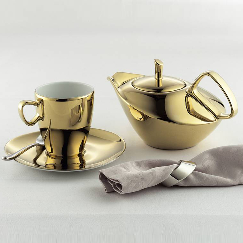 这种装饰称为蒸发,因为金属外观是通过特殊气体混合物的蒸发产生的。 所需的颜色效果取决于蒸发过程中的暴露时间。这种装饰过程复杂而敏感(只有最好的瓷器,装饰前烧制,抛光,单个包装,在汽化前烧制后处理物品时戴上手套)。
